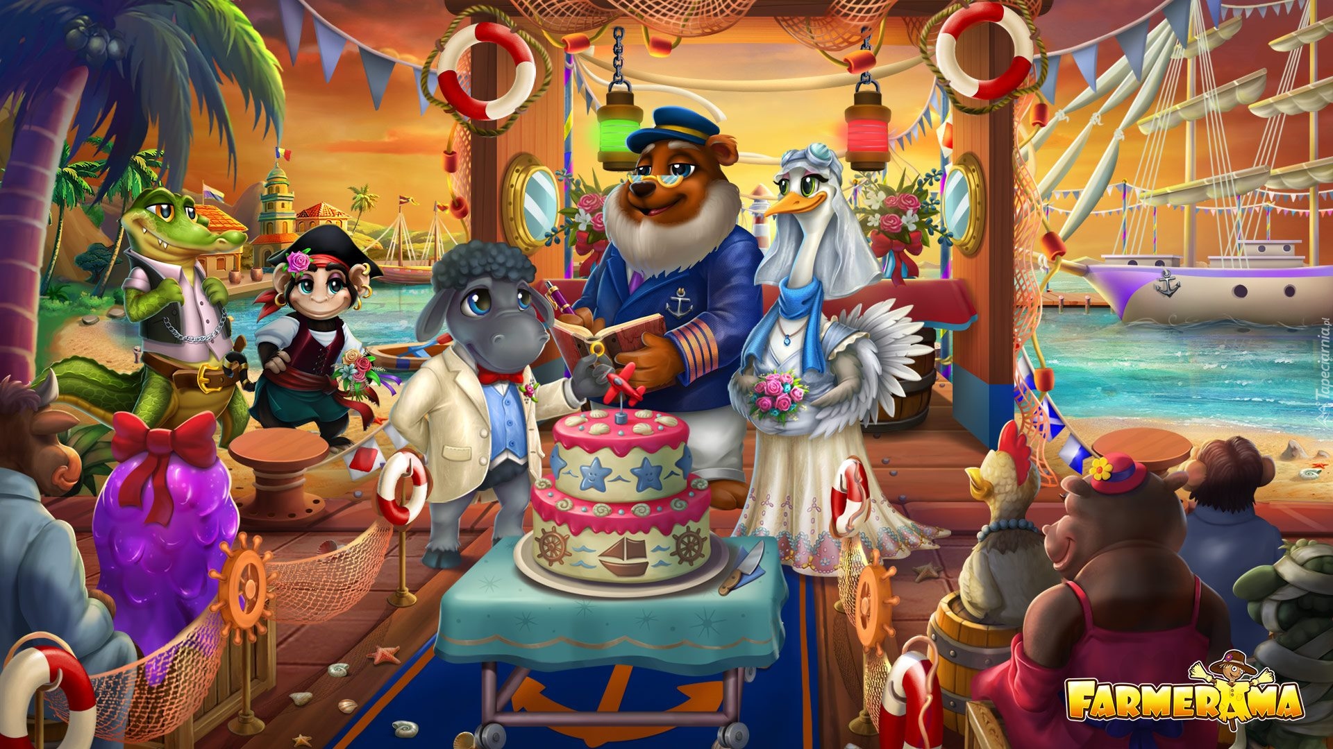 Edytor tapety: Ślub na statku z gry Farmerama