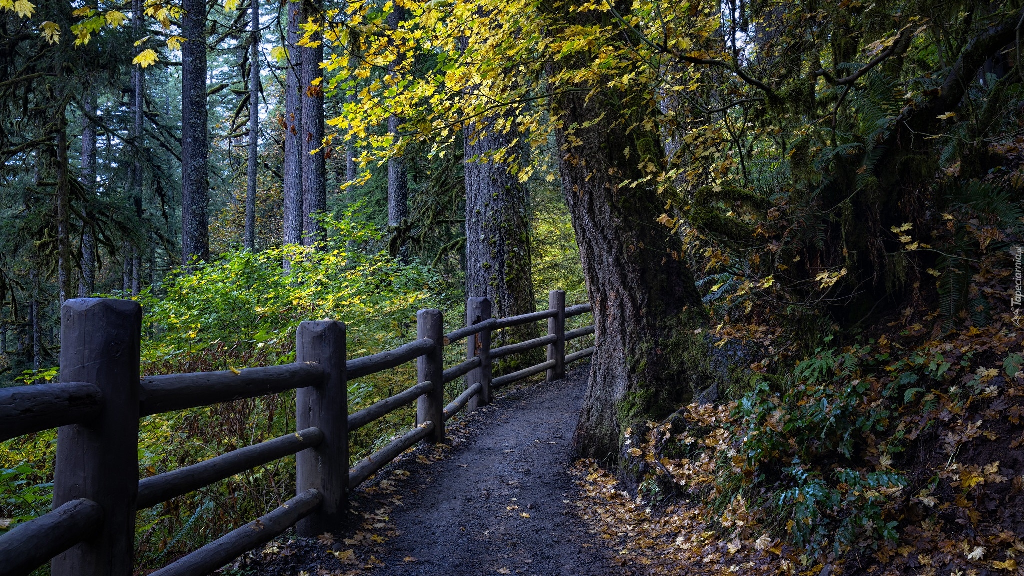 Edytor tapety: Ogrodzona ścieżka w lesie