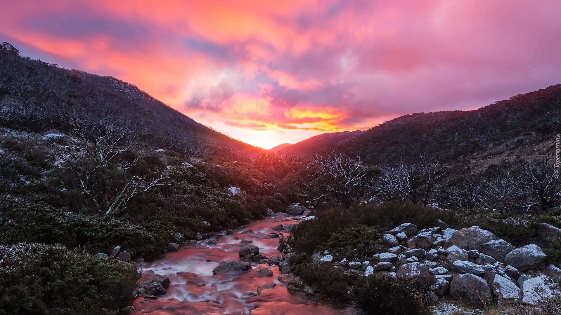 Edytor tapety: Kamienie w potoku i krzewy na poboczu