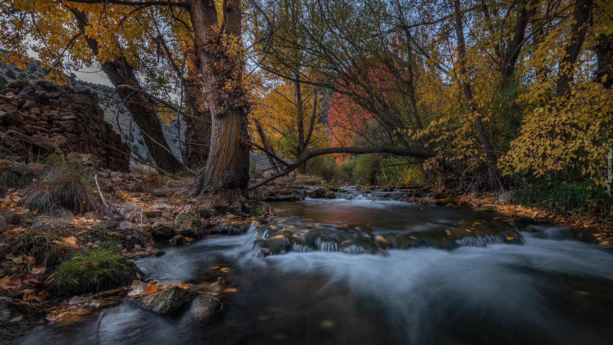 Edytor tapety: Jesienne drzewa nad leśnym strumieniem