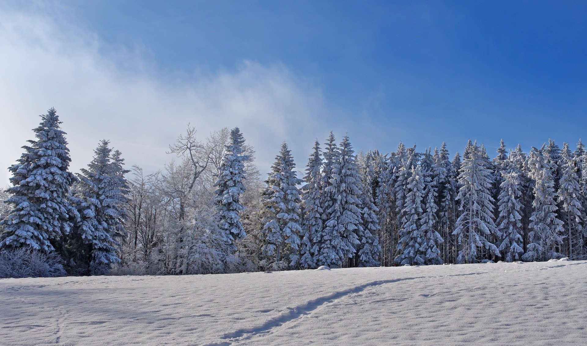 Edytor tapety: Ośnieżone drzewa na skraju pokrytego śniegiem pola