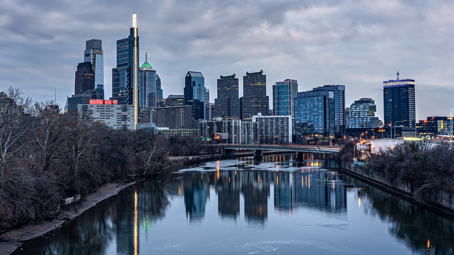 Edytor tapety: Rzeka Schuylkill i drapacze chmur w Filadelfii