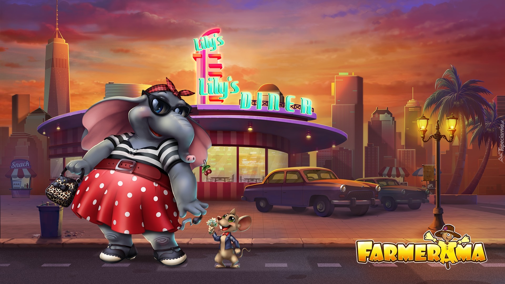 Edytor tapety: Słoń i myszka z gry Farmerama