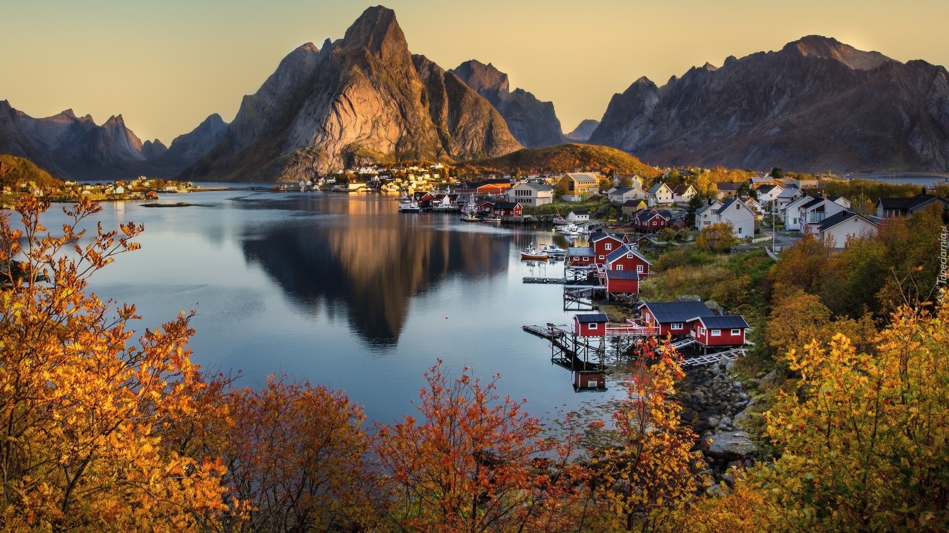 Edytor tapety: Wioska Reine w pogodny jesienny dzień