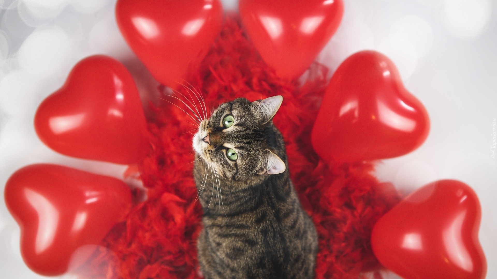 Edytor tapety: Kotek pośród balonów w kształcie serca
