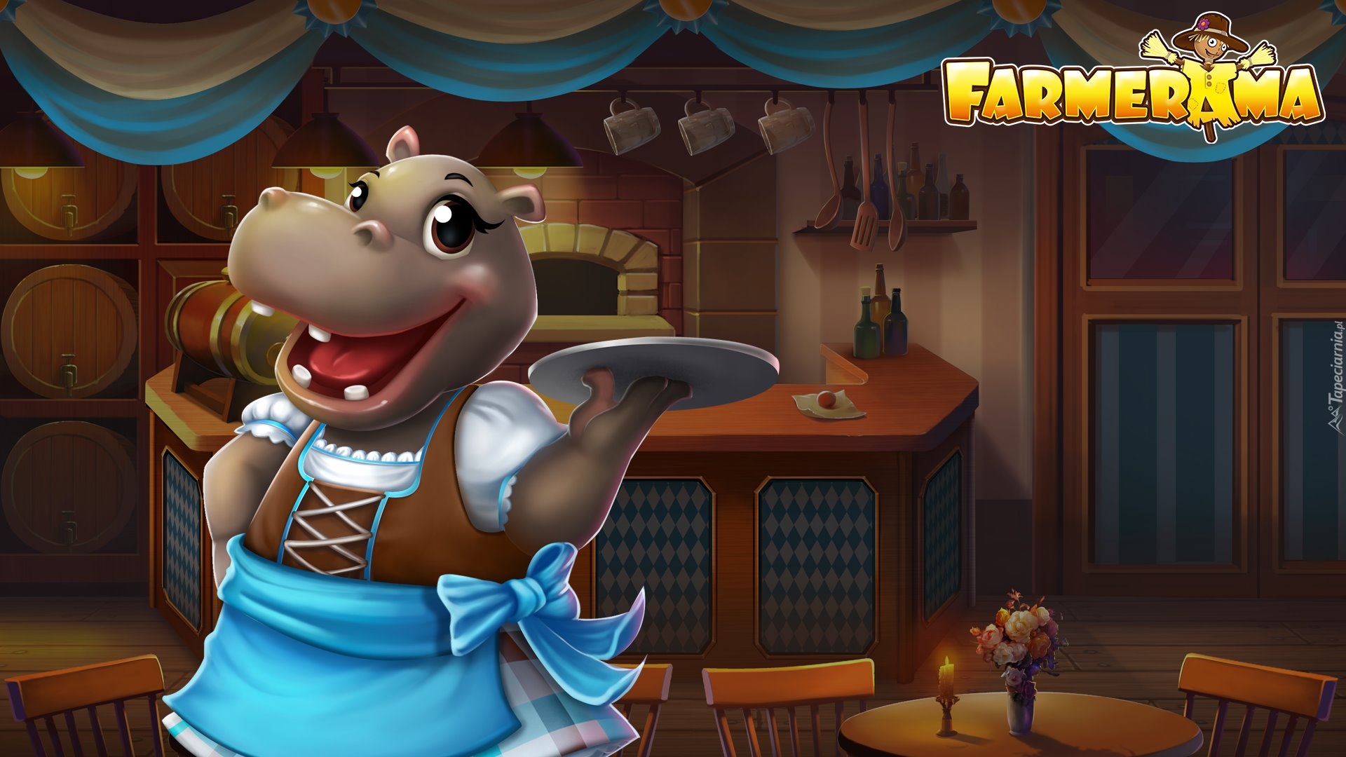 Edytor tapety: Hipopotam jako kelner z gry Farmerama