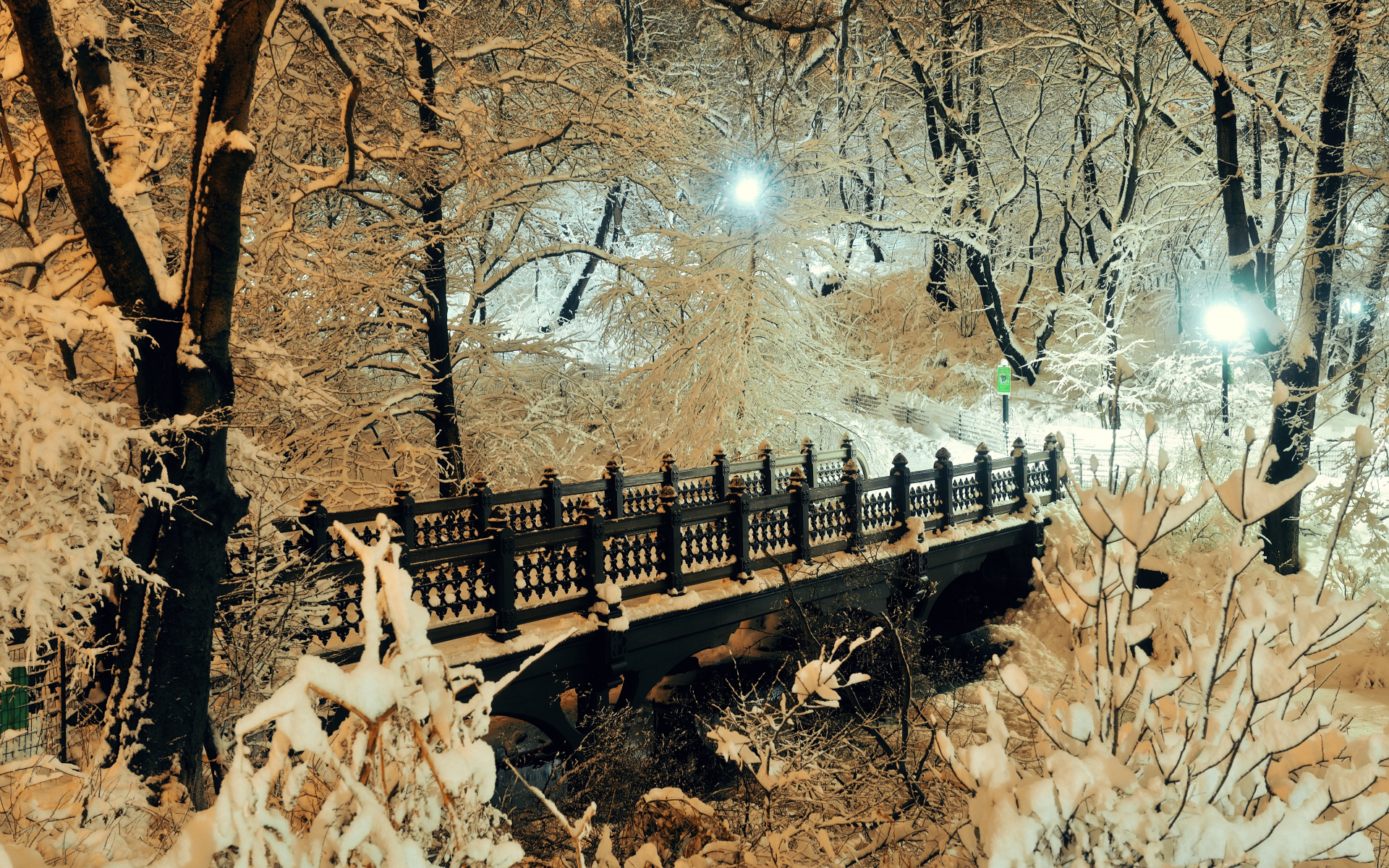 Edytor tapety: Most pośród ośnieżonych drzew
