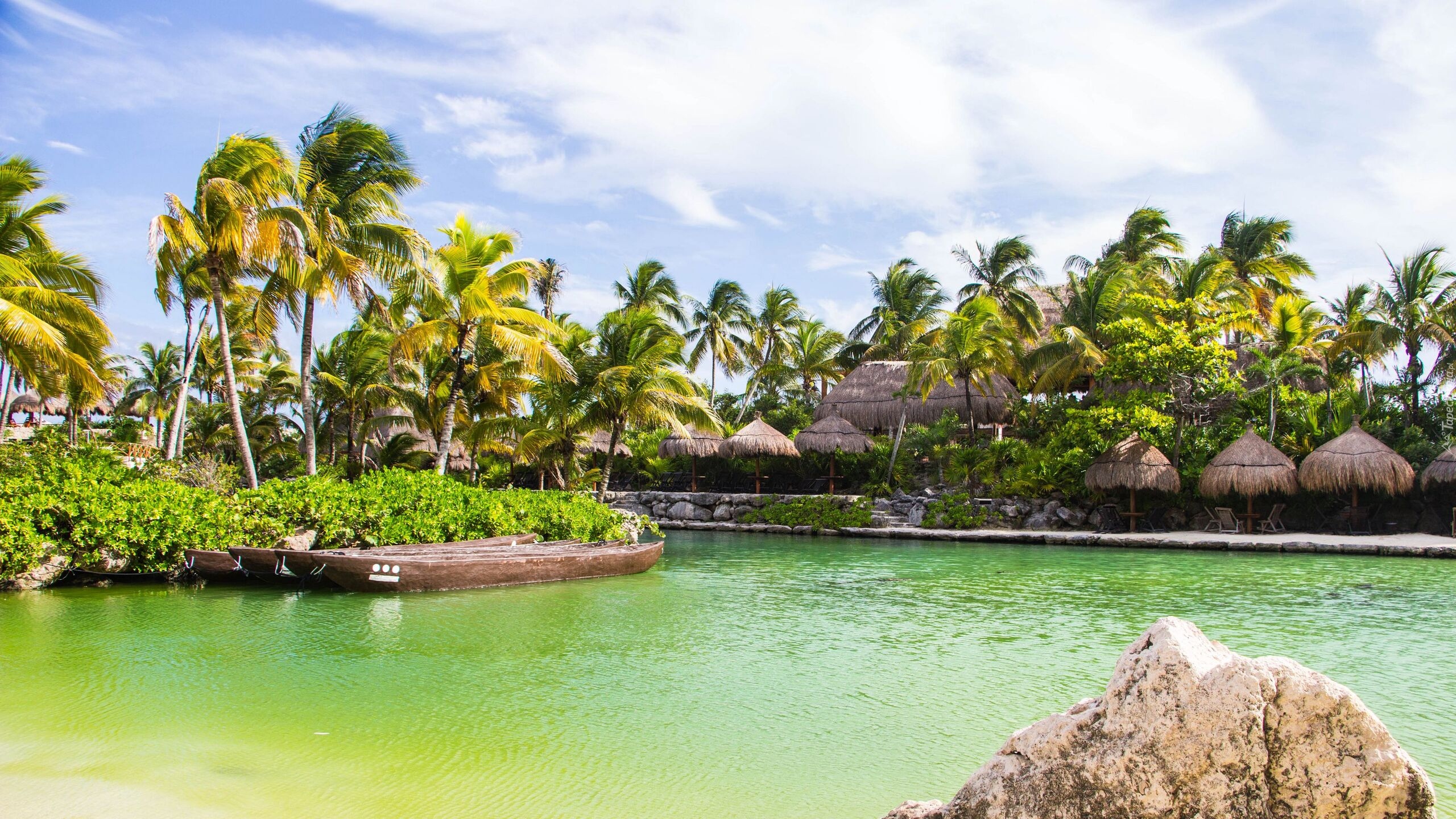 Edytor tapety: Parasole pod palmami nad morzem