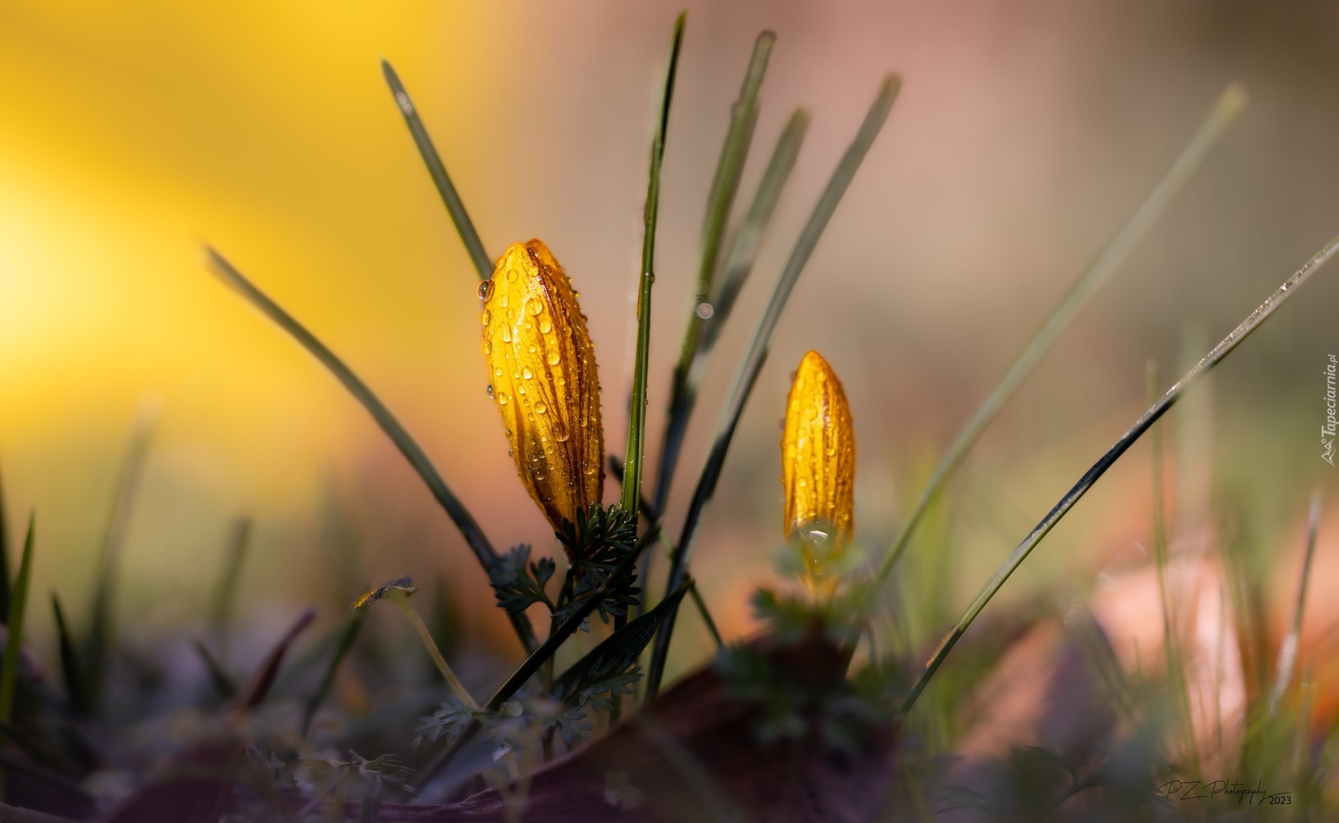 Edytor tapety: Dwa mokre pąki żółtych krokusów