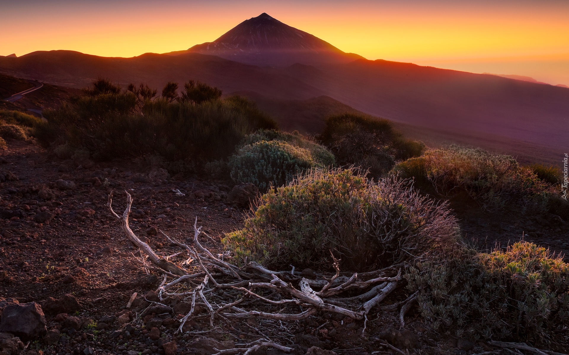 Edytor tapety: Stratowulkan Teide na Teneryfie o zachodzie słońca