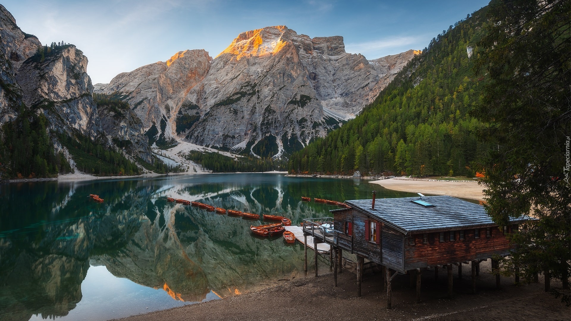 Edytor tapety: Chata nad jeziorem Pragser Wildsee