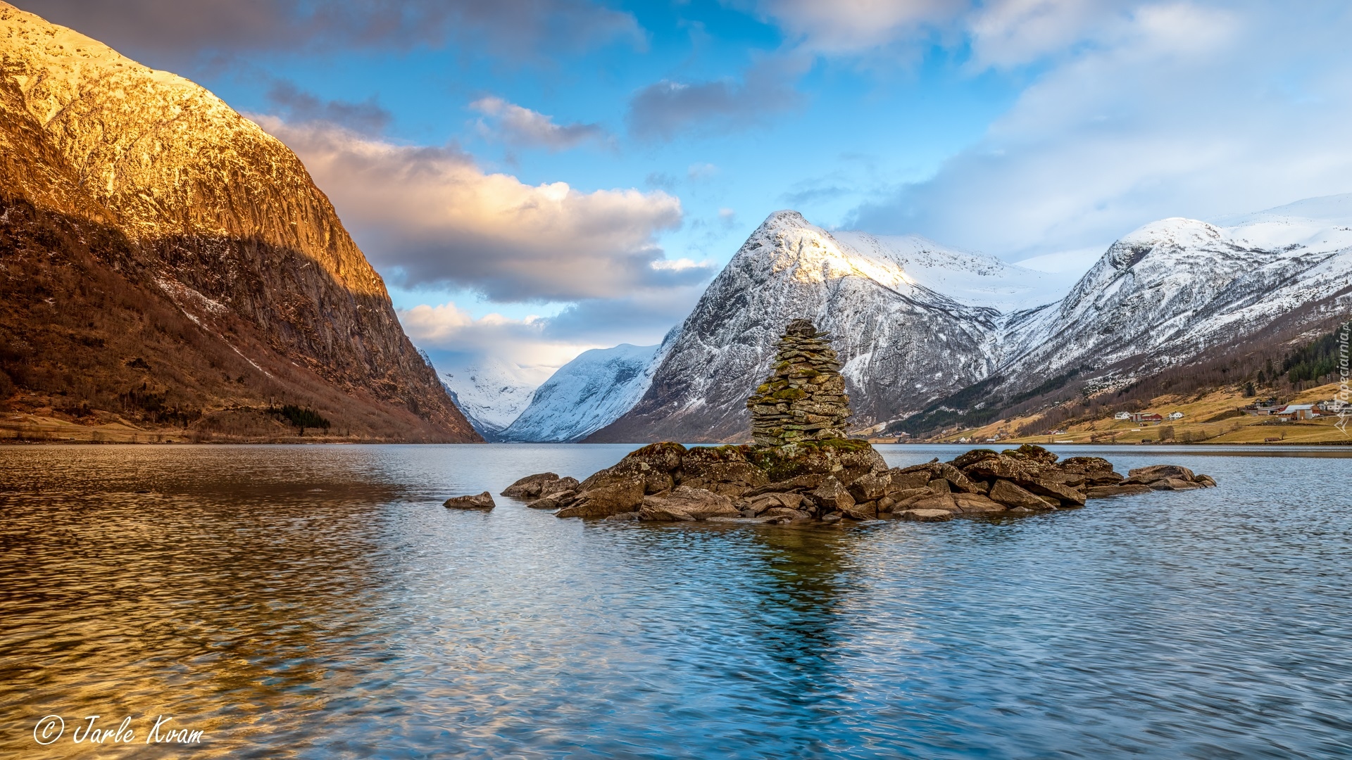 Edytor tapety: Jezioro Kjosnesfjorden na tle gór