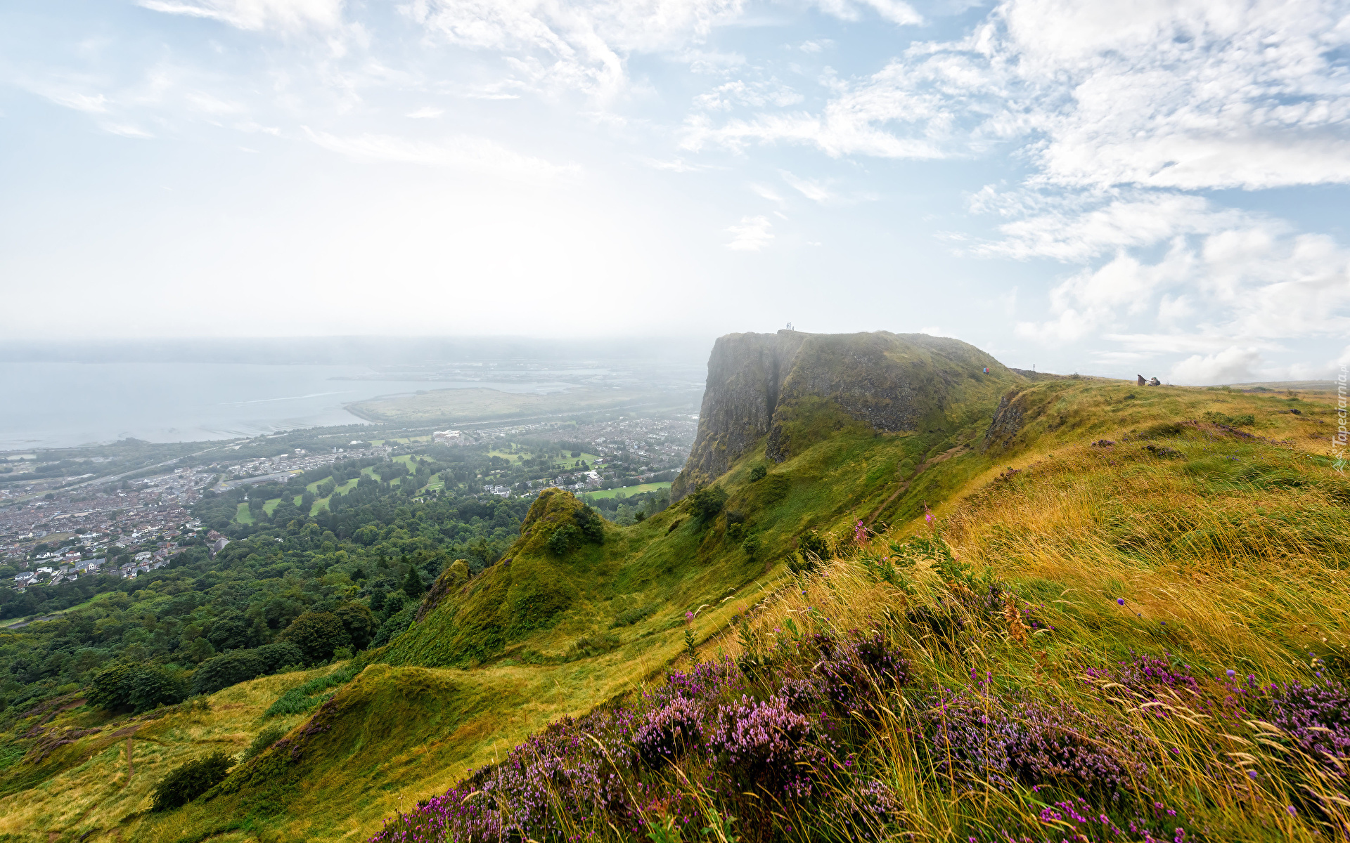 Edytor tapety: Skały na wzgórzu z widokiem na miasteczko