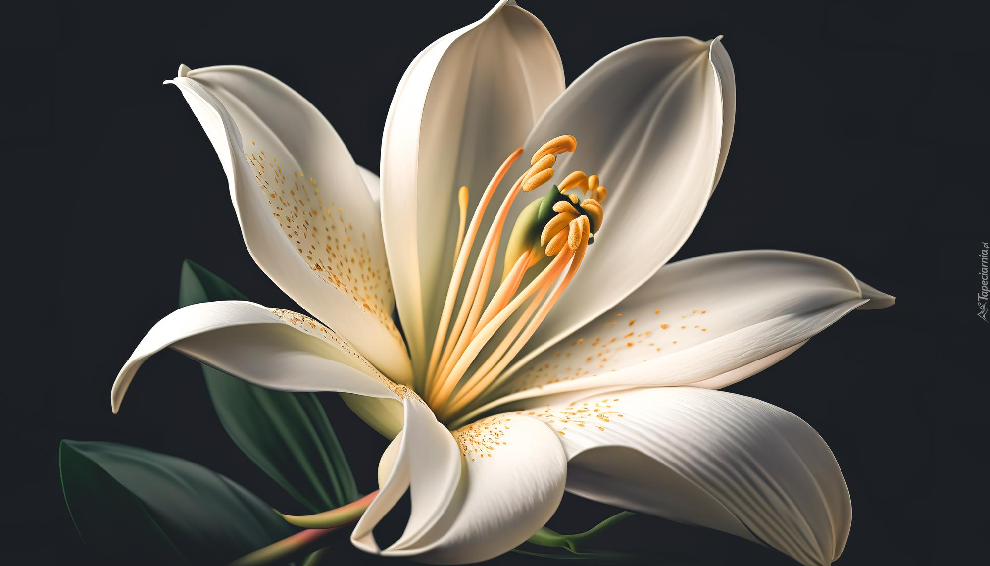 Edytor tapety: Rozkwitnięty kwiat białej lilii w grafice