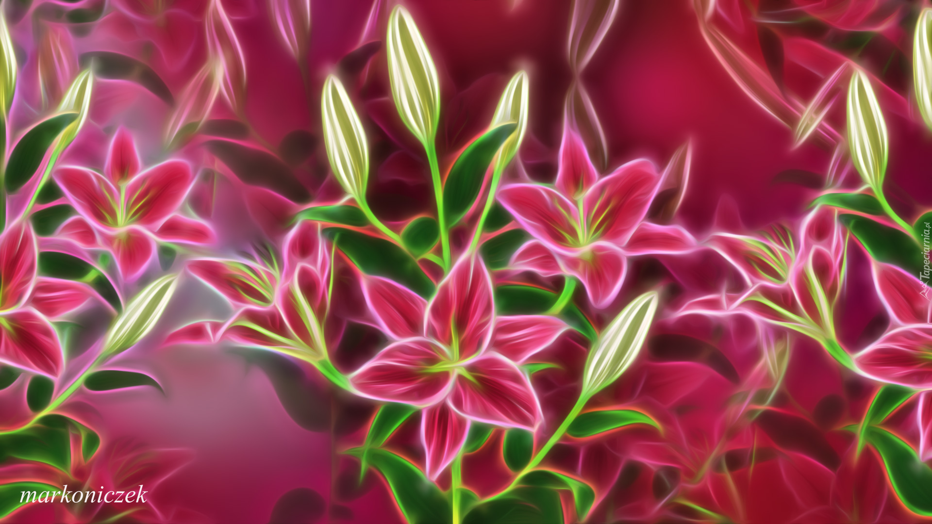 Edytor tapety: Lilie z pąkami w grafice fractalius