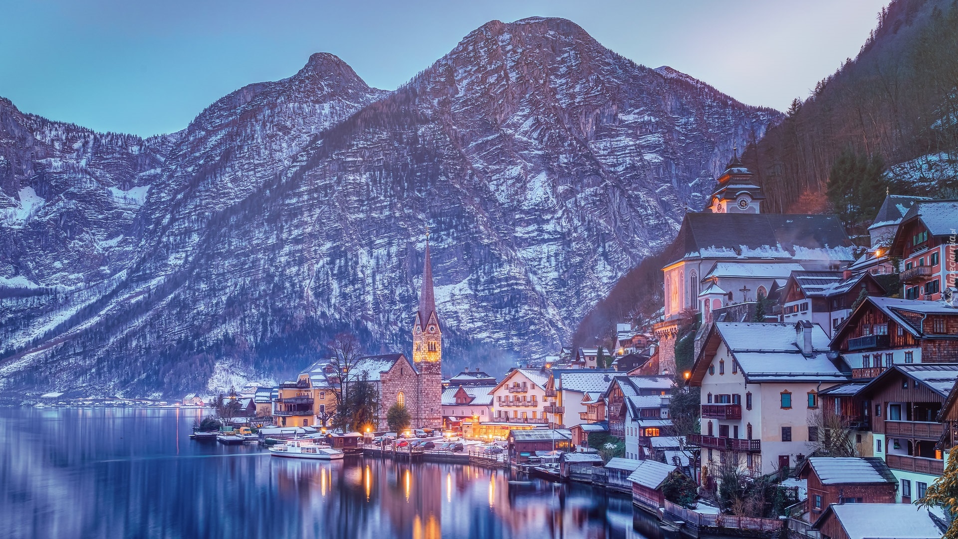 Edytor tapety: Miasteczko Hallstatt zimową porą