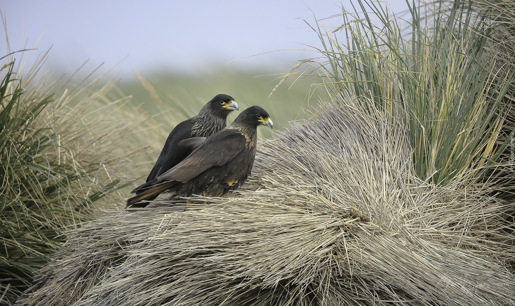 Edytor tapety: Karakary falklandzkie w trawie