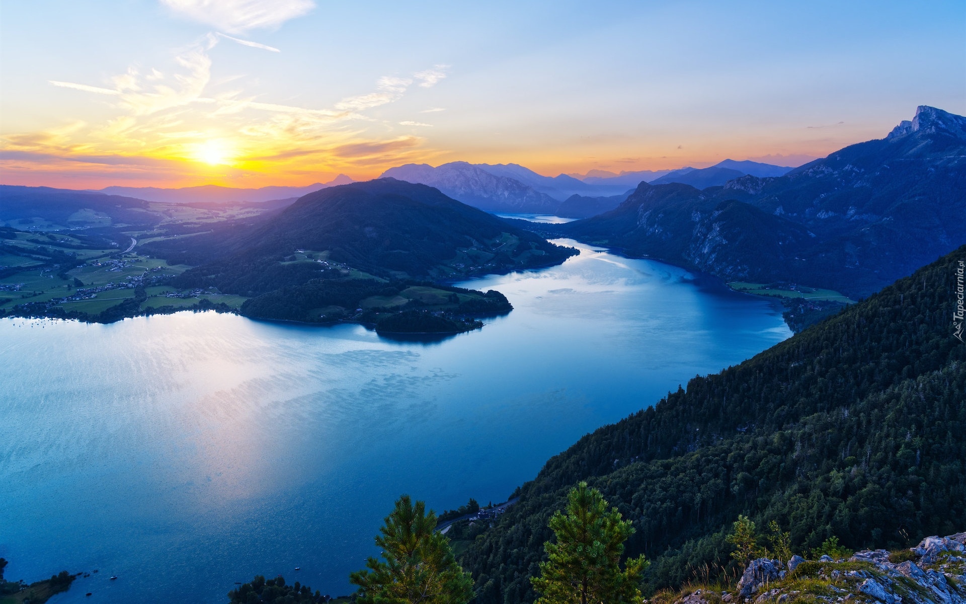 Edytor tapety: Jezioro Mondsee w Alpach o wschodzie słońca