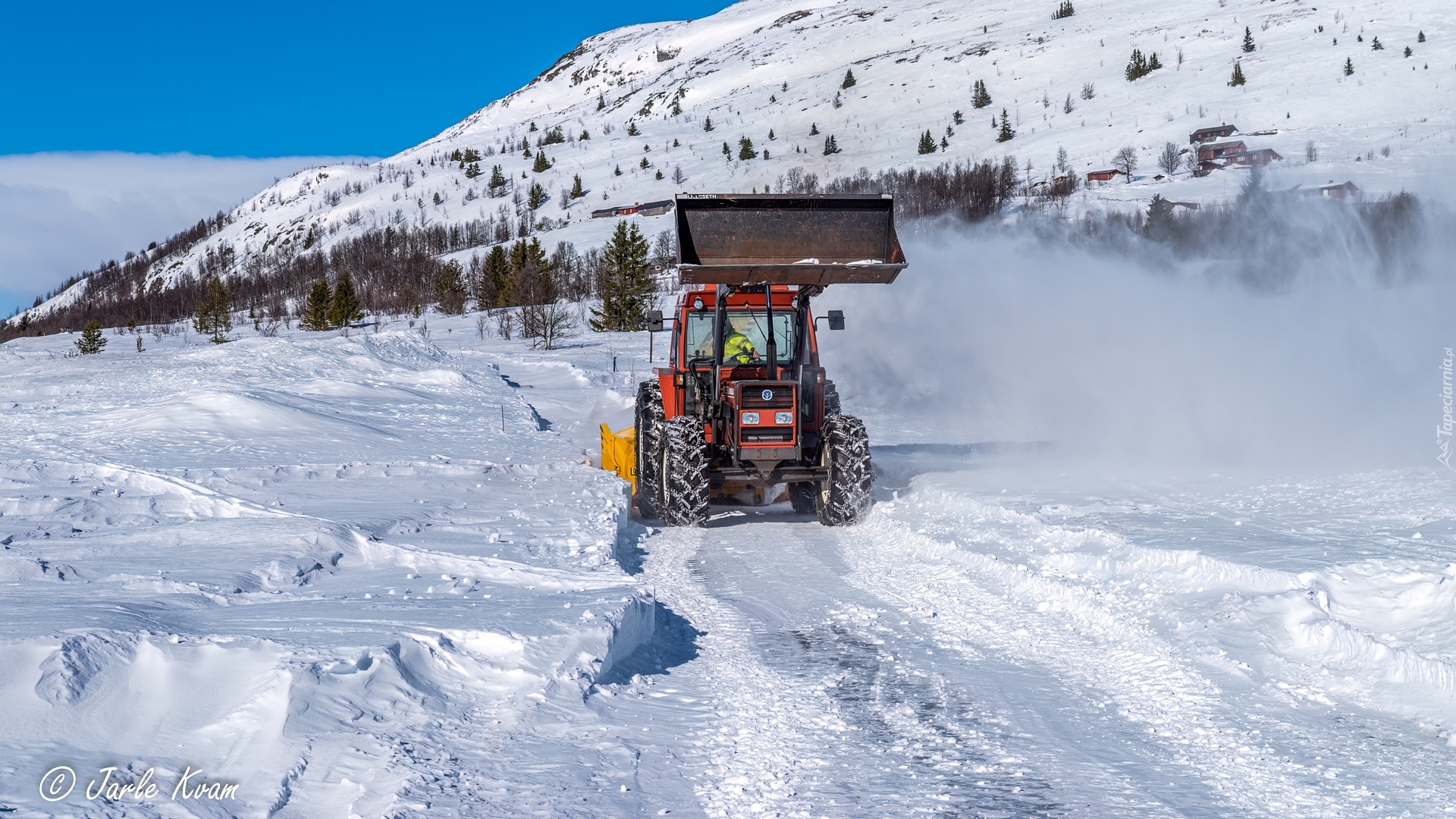 Edytor tapety: Pług śnieżny na tle zimowych gór