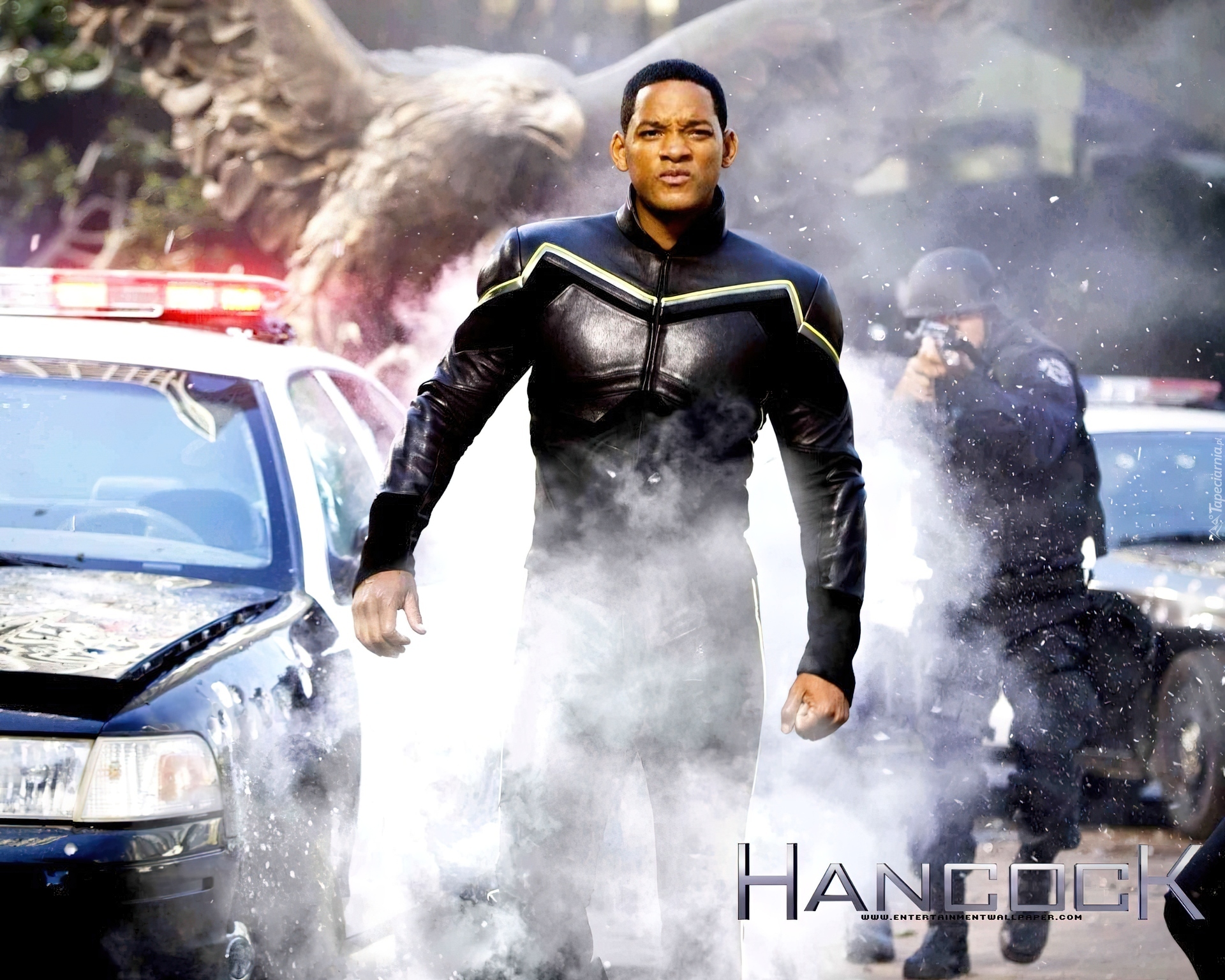 Edytor tapety: Hancock, Will Smith, dym, radiowóz
