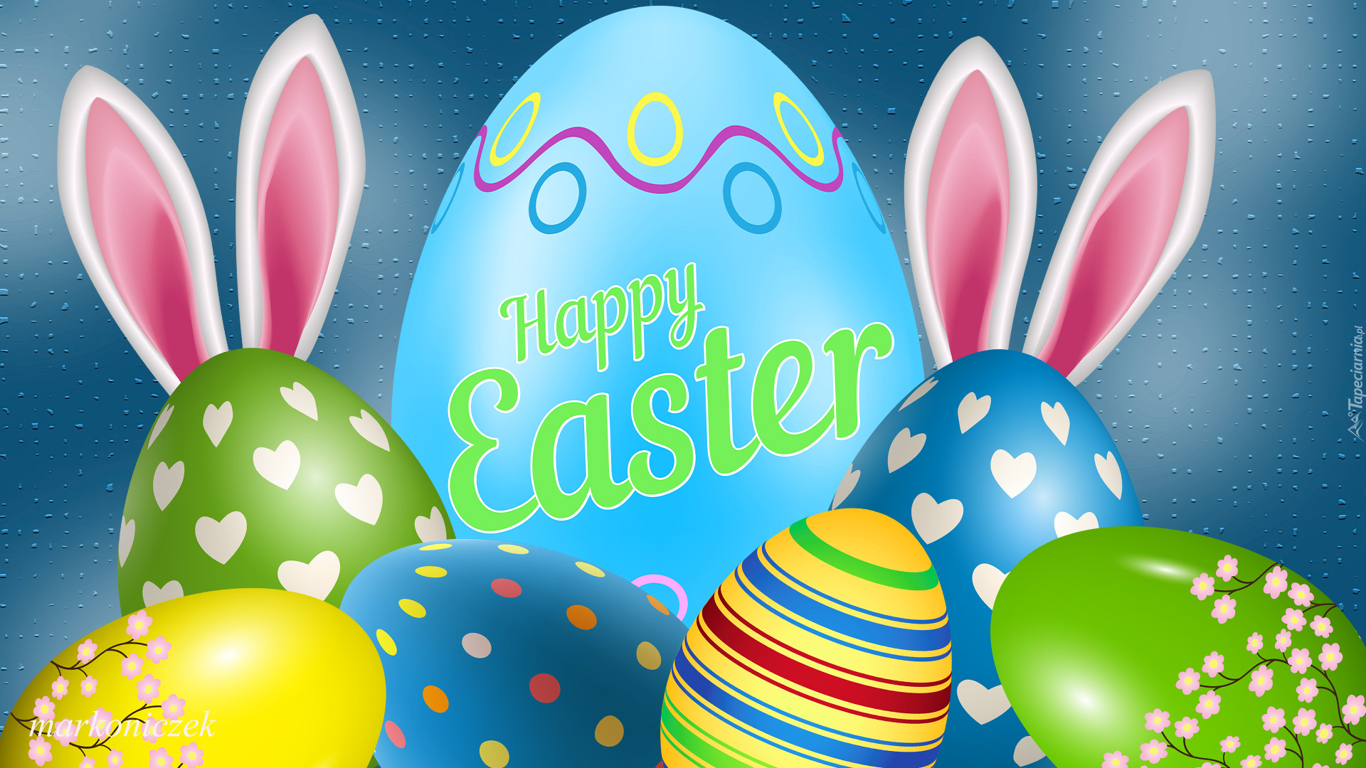 Edytor tapety: Napis Happy Easter na pisance w grafice