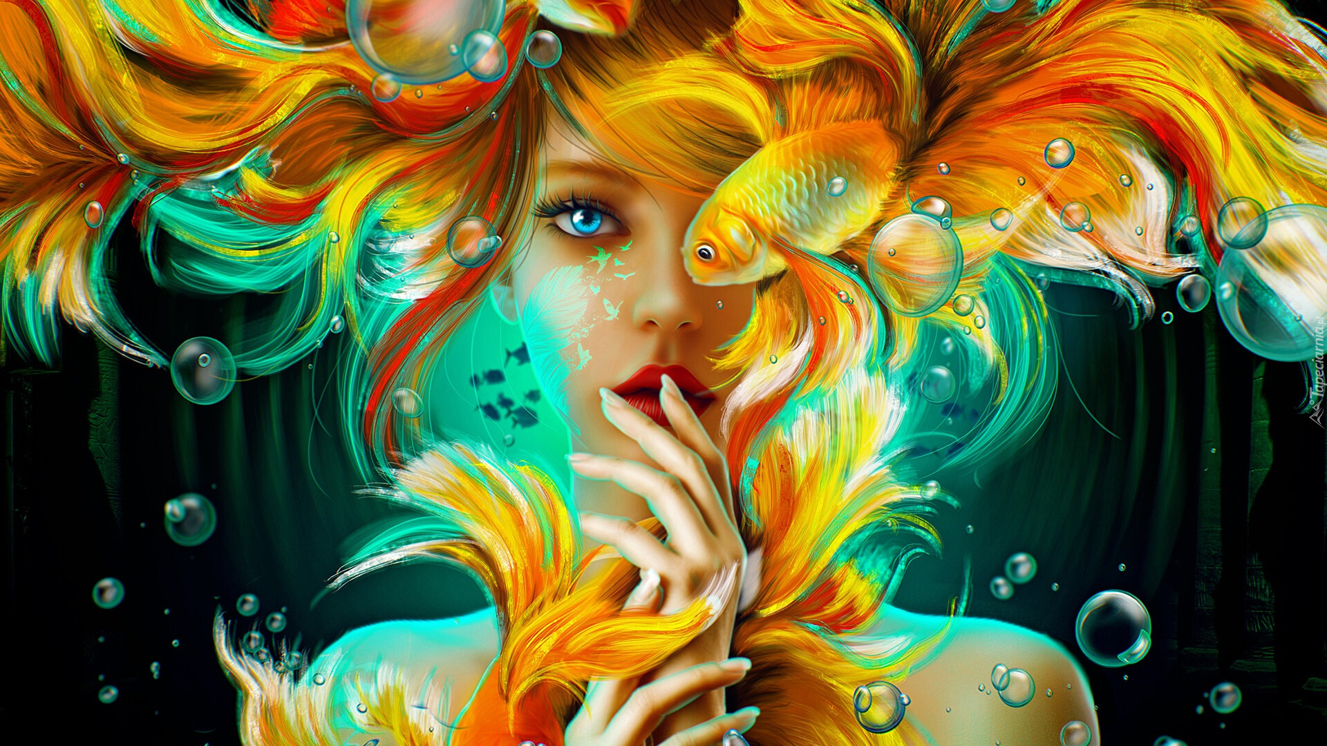 Edytor tapety: Dziewczyna i złota rybka