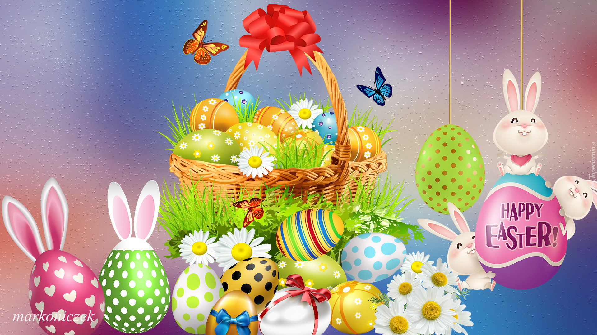 Edytor tapety: Pisanki w koszyczku i obok