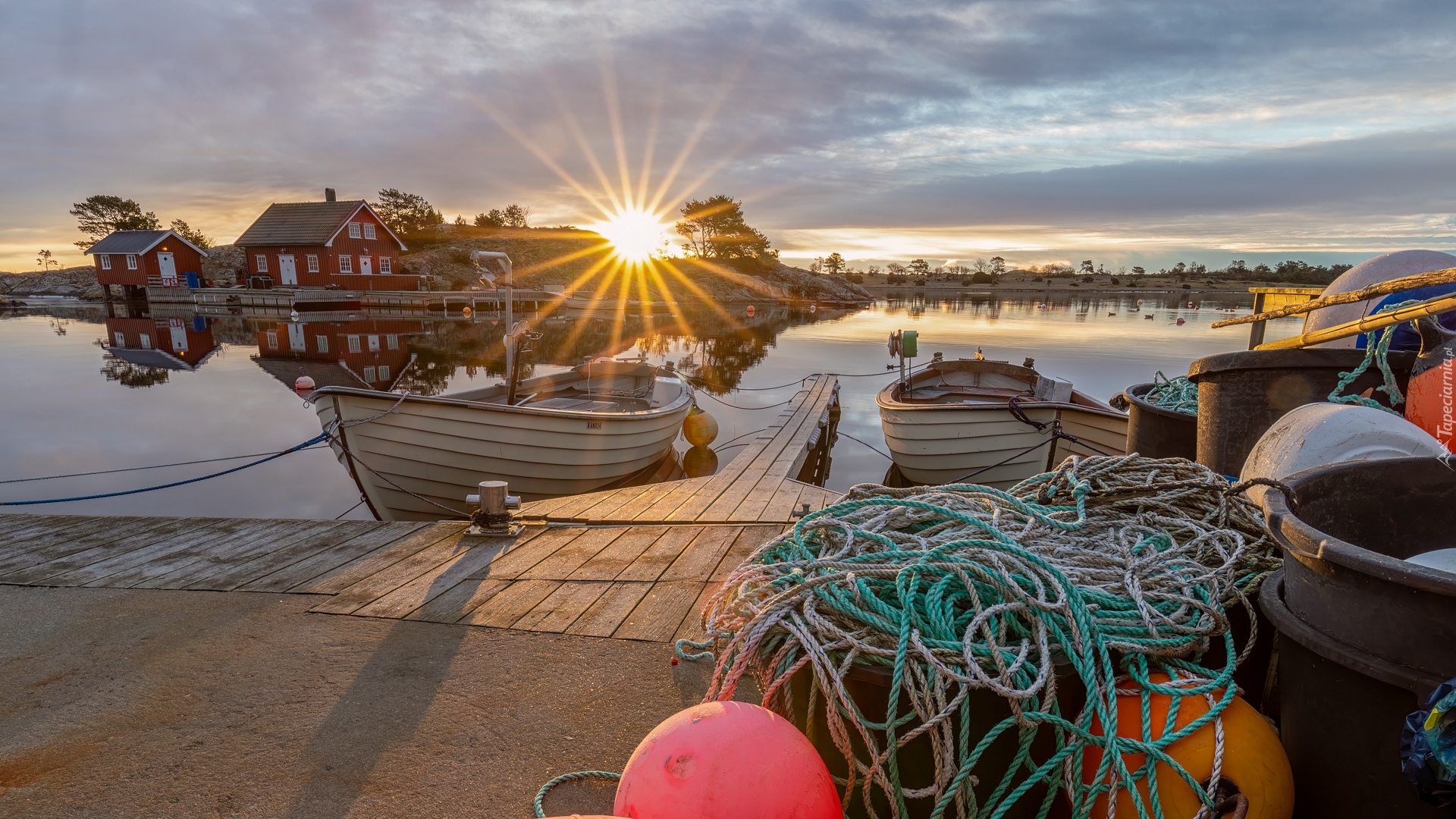 Edytor tapety: Łódki na przystani w promieniach słońca