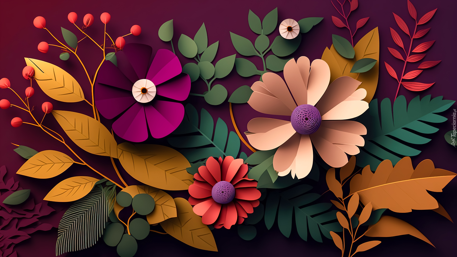 Edytor tapety: Kwiaty na liściach w grafice AI