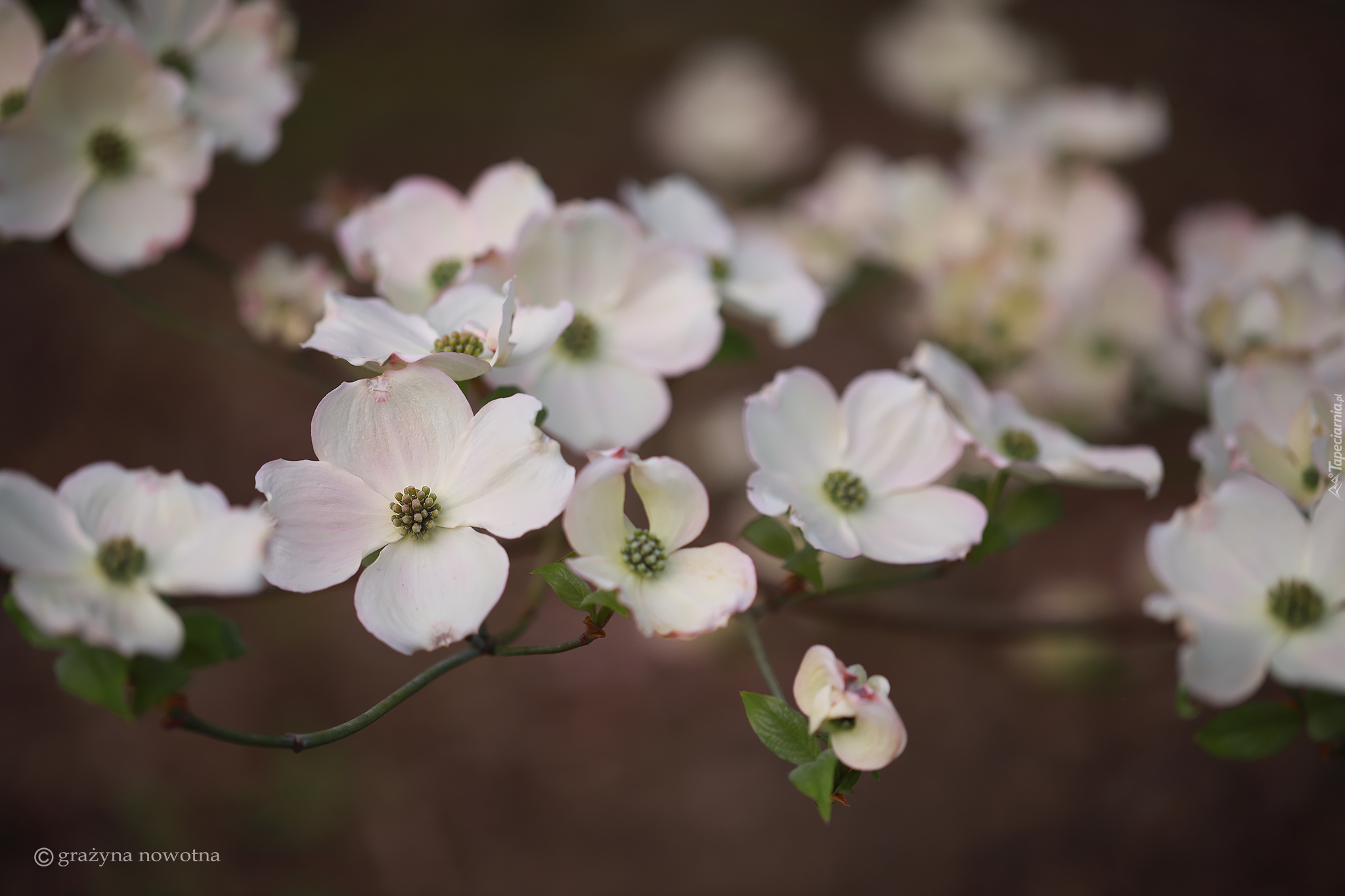 Edytor tapety: Kwitnący dereń kwiecisty w zbliżeniu