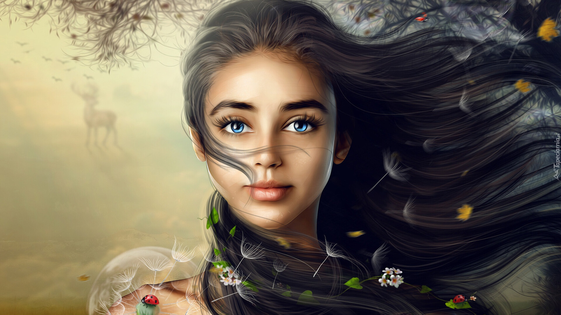 Edytor tapety: Dziewczyna z dmuchawcami we włosach