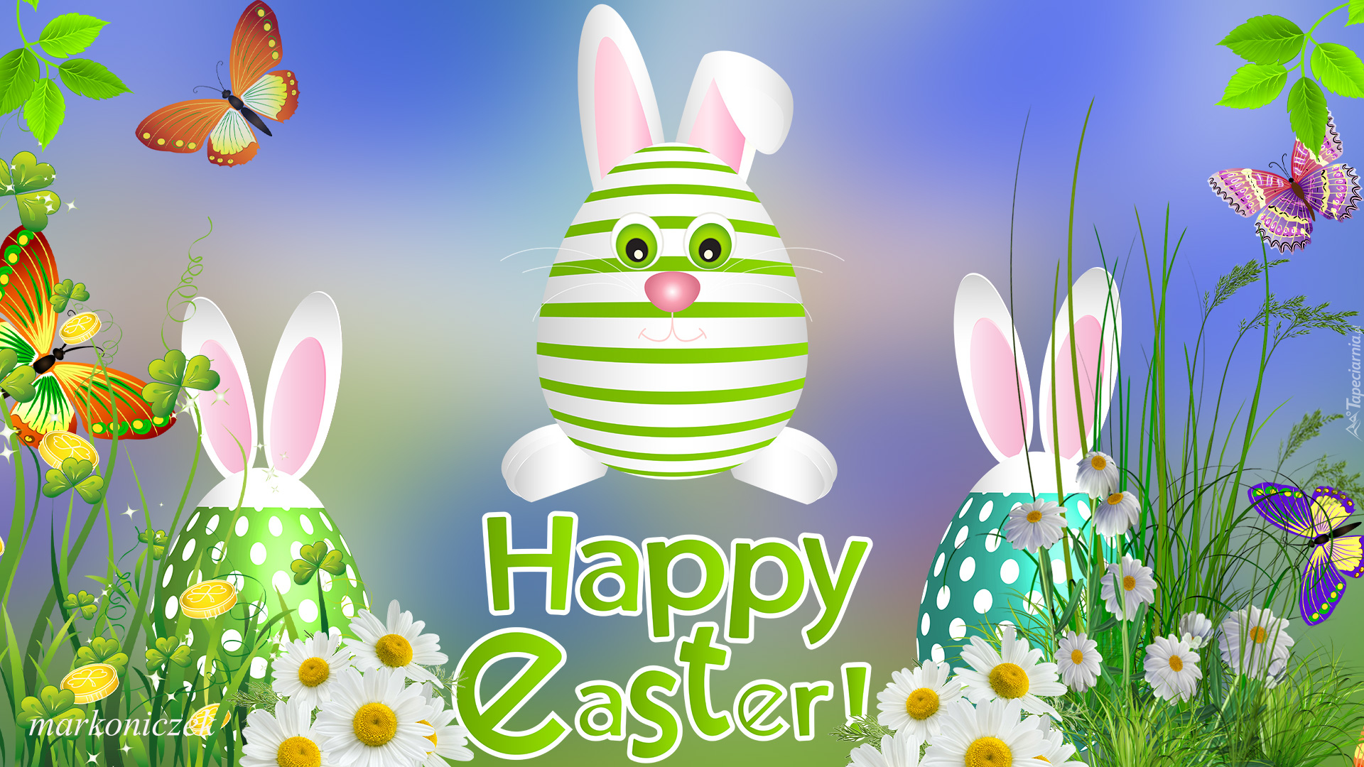 Edytor tapety: Kompozycja wielkanocna z zajączkami i pisankami w grafice