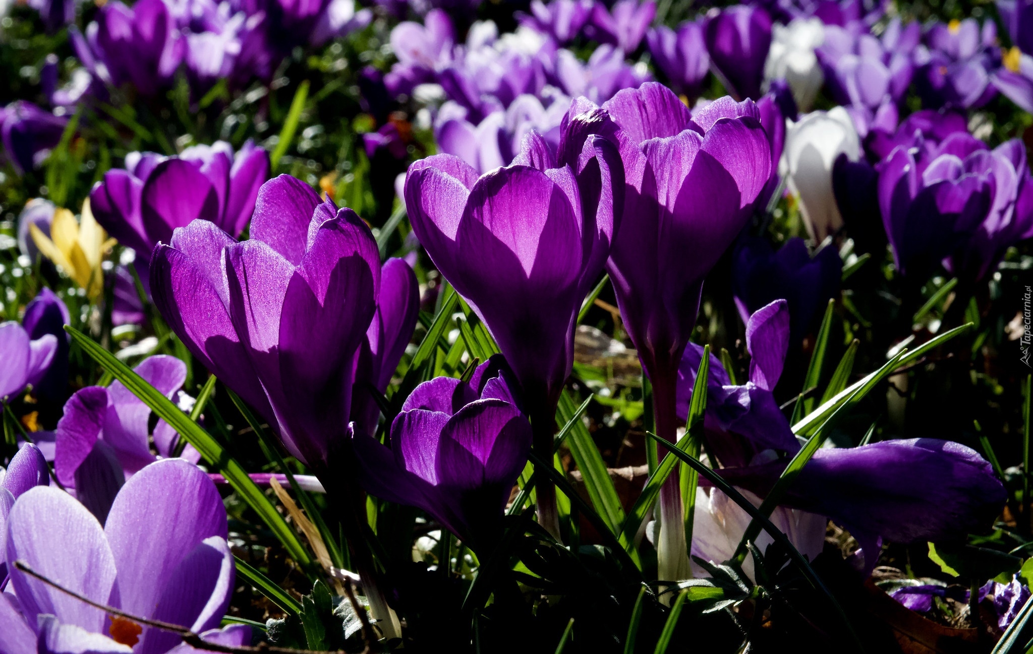 Edytor tapety: Ciemnofioletowe i rozświetlone krokusy