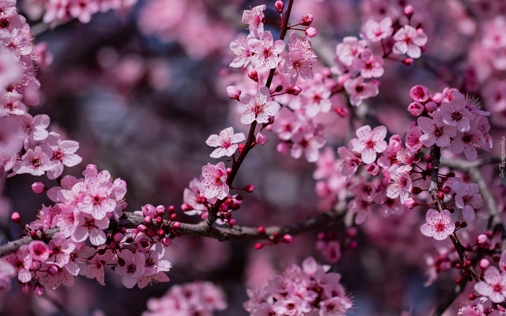 Edytor tapety: Gałązki z kwitnącymi kwiatami i pąkami