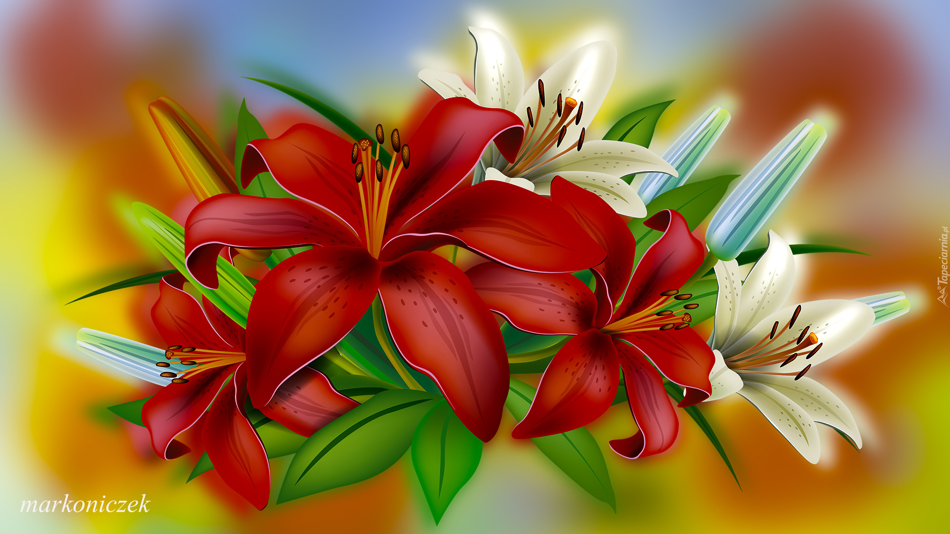 Edytor tapety: Czerwone i białe lilie w grafice