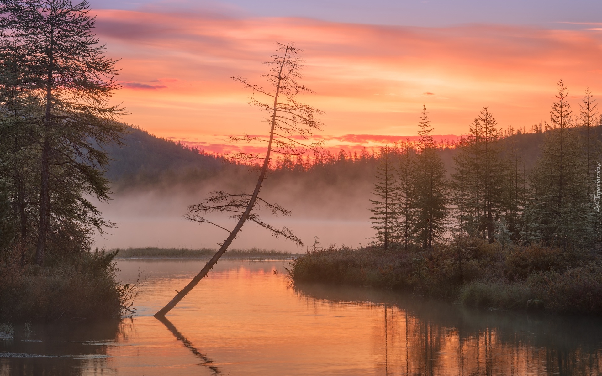 Edytor tapety: Kolorowe niebo wschodzącego słońca na Kołymie