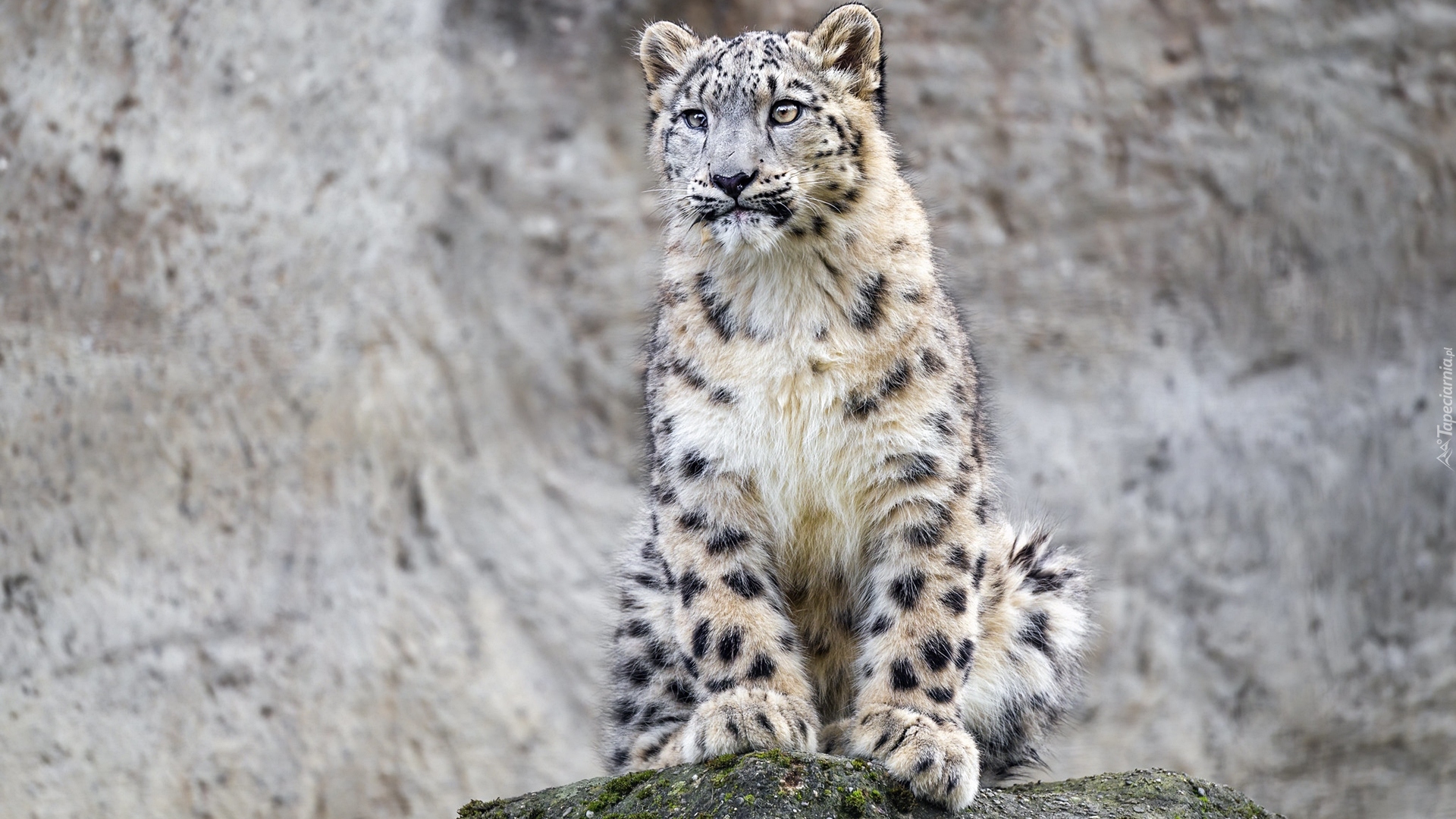 Edytor tapety: Irbis śnieżny siedzący na skale