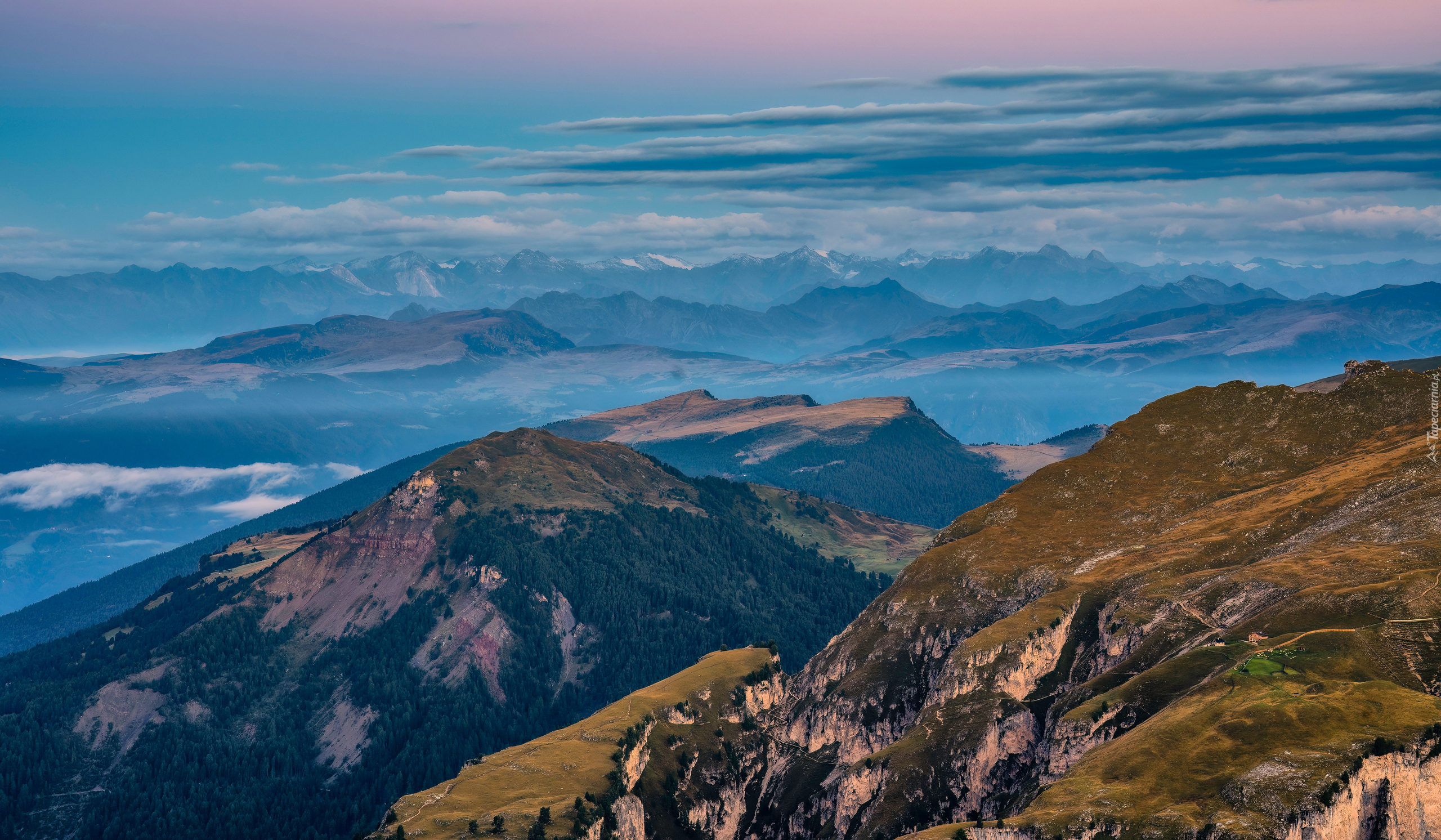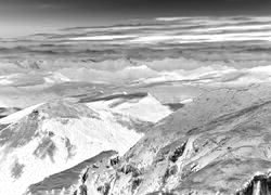 Edytor tapety: Chmury nad szczytami gór