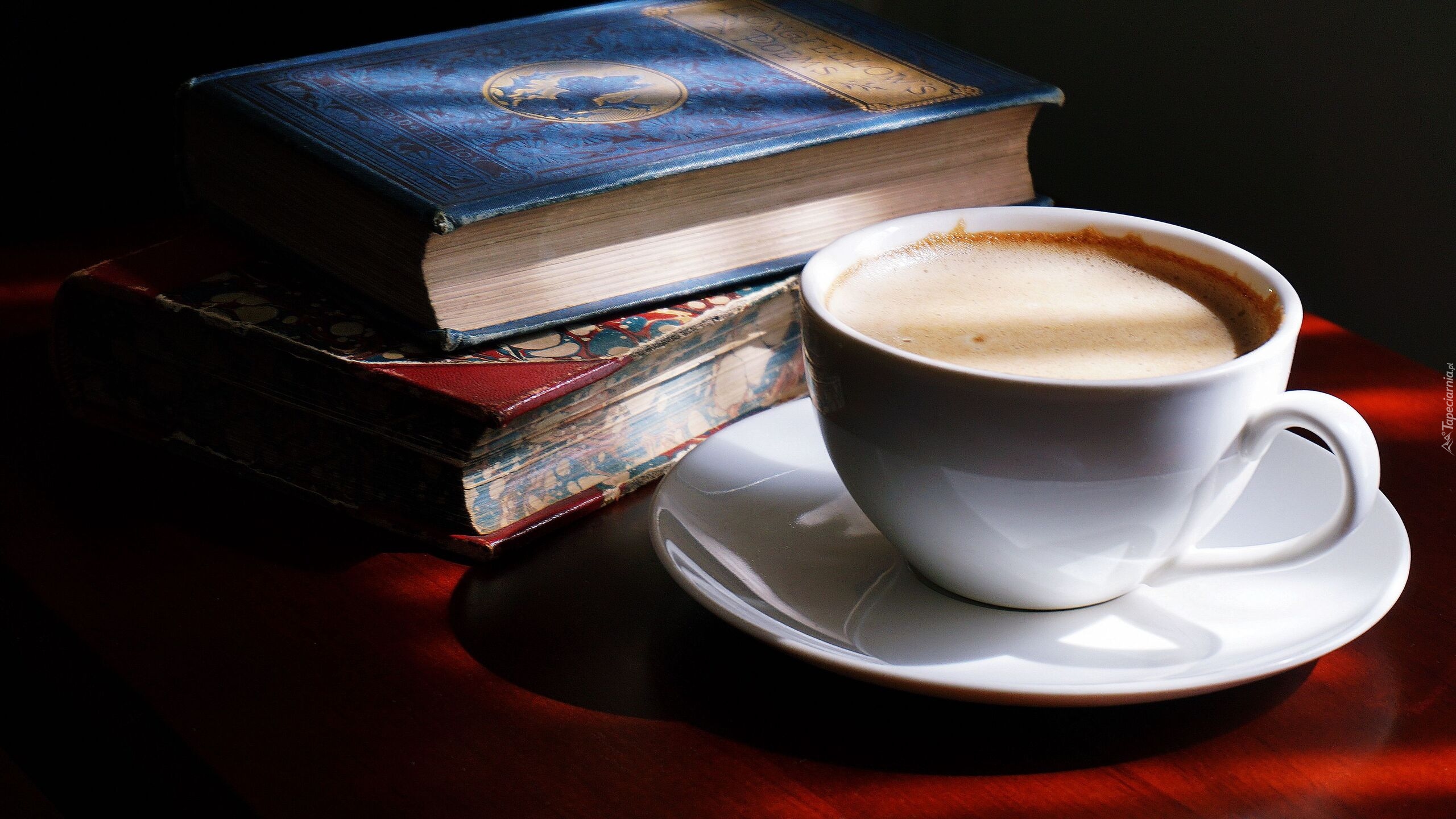 Edytor tapety: Filiżanka z kawą obok książek