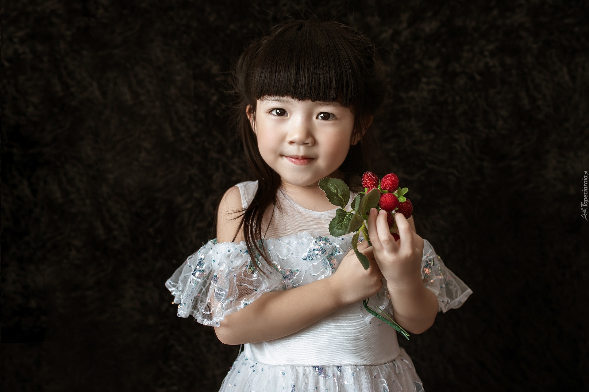 Edytor tapety: Mała dziewczynka trzymająca owoce