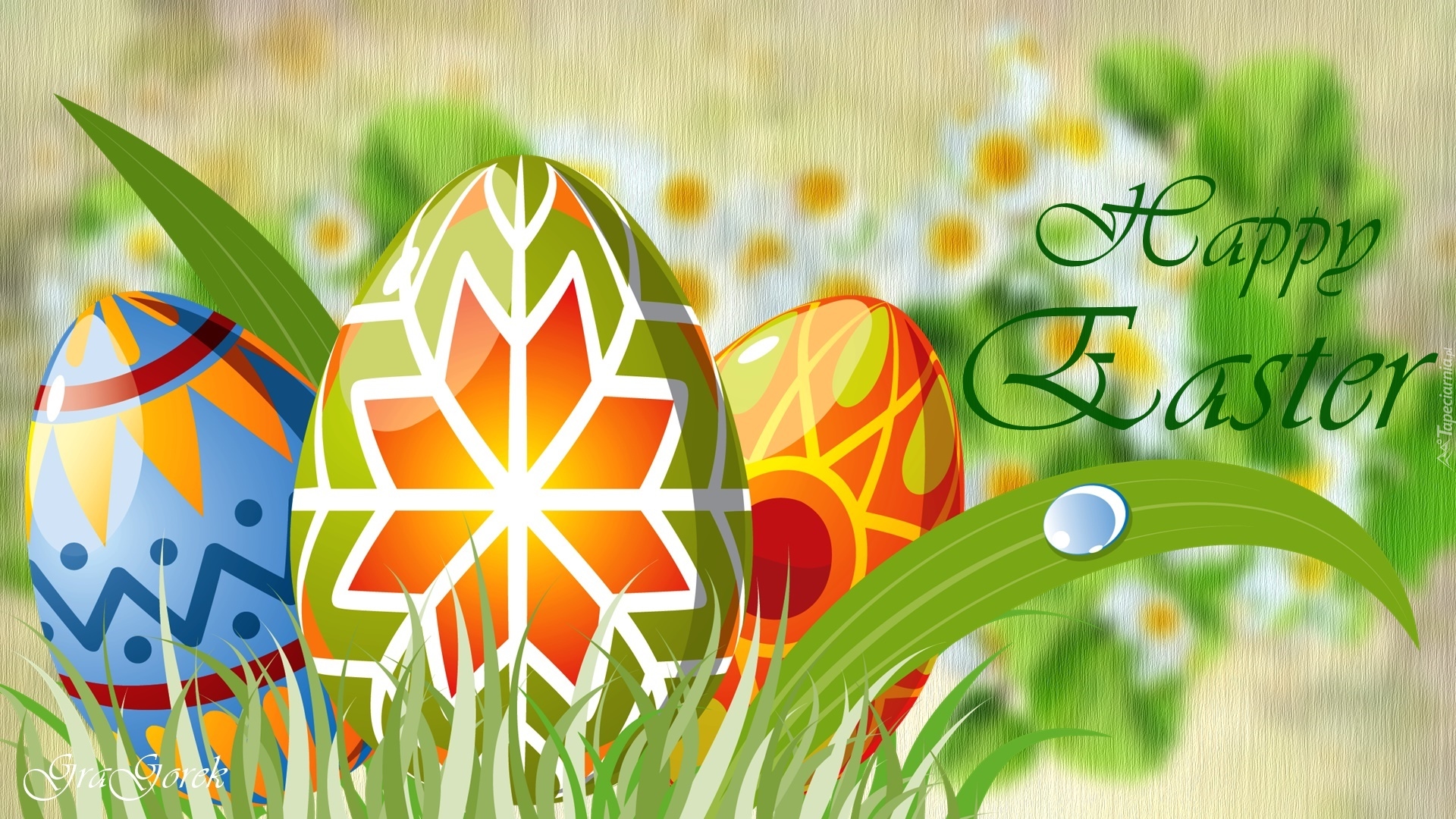 Edytor tapety: Pisanki i napis Happy Easter w grafice