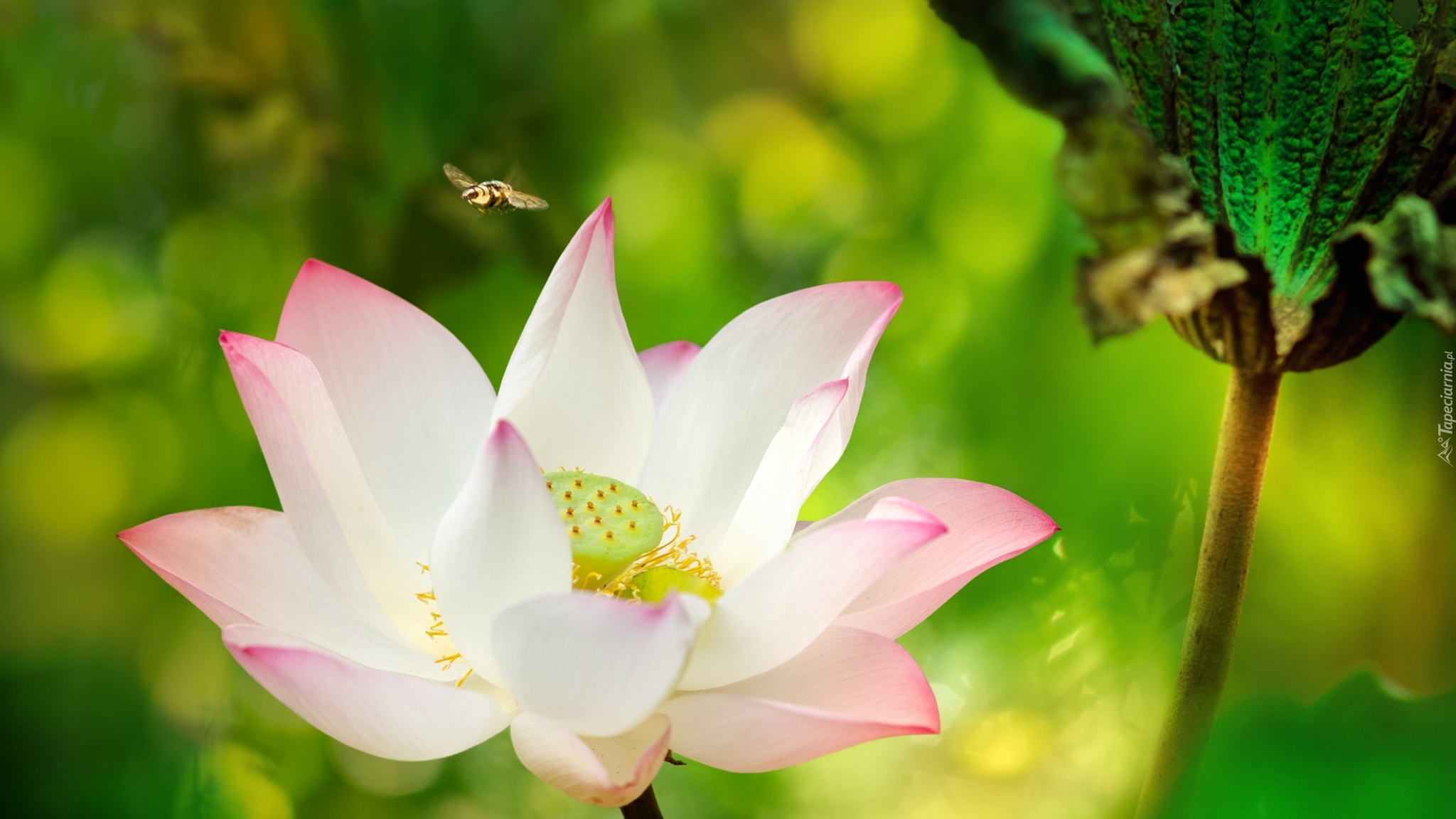 Edytor tapety: Pszczoła nad kwiatem lotosu