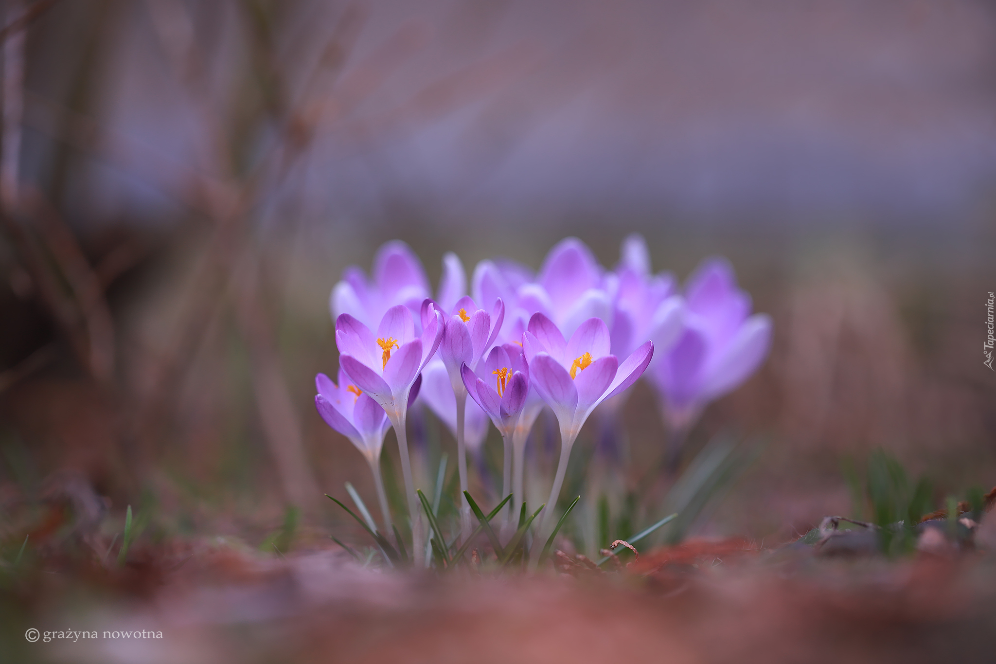 Edytor tapety: Rozkwitające krokusy z pręcikami w rozmyciu