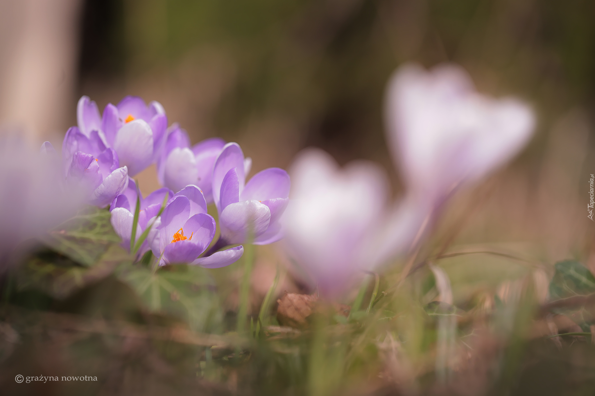 Edytor tapety: Jasno fioletowe krokusy na rozmytym tle