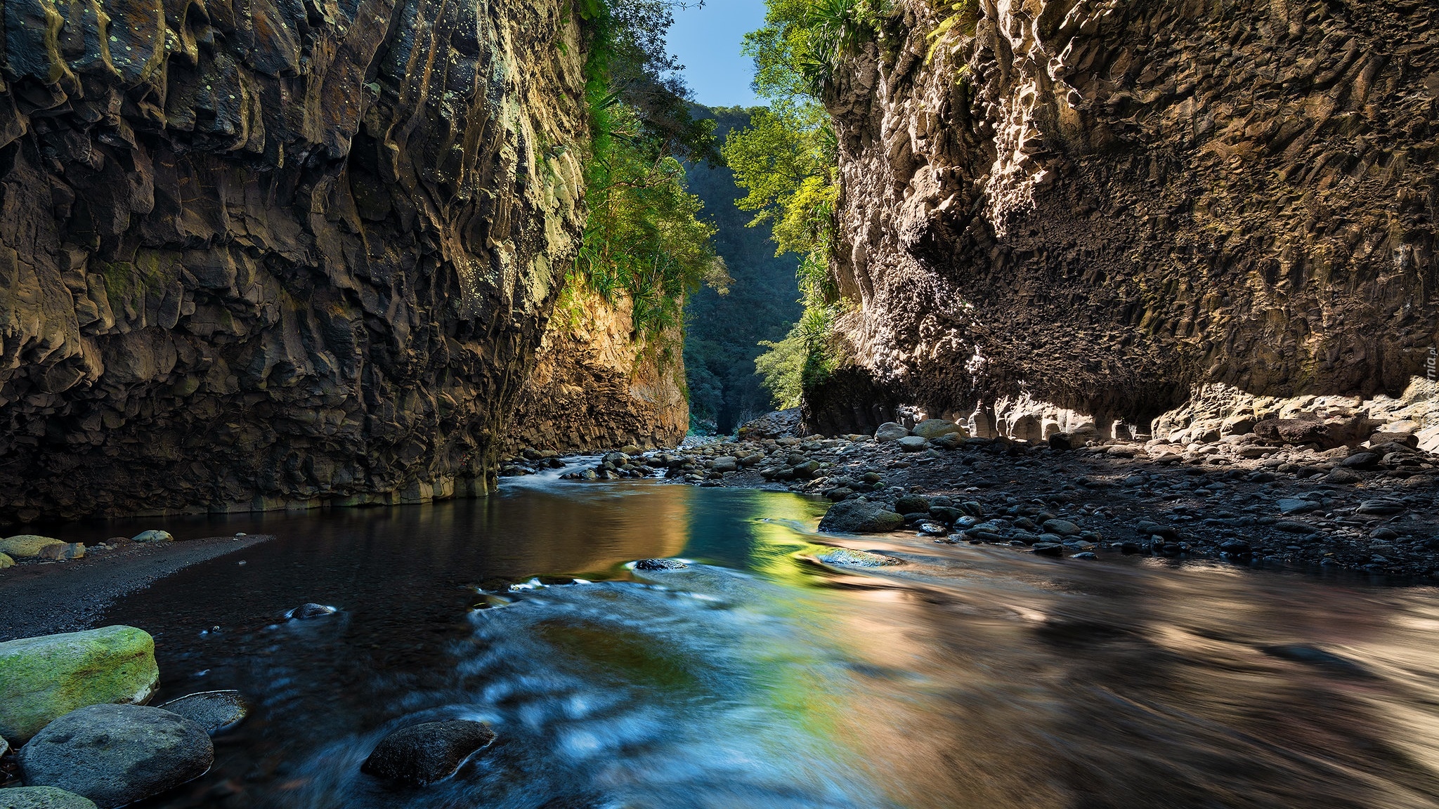 Edytor tapety: Rzeka przepływająca przez wąwóz na wyspie Reunion