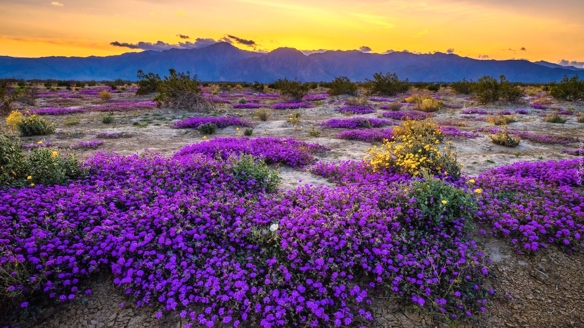 Edytor tapety: Kwiaty i góry w Parku stanowym Anza Borrego