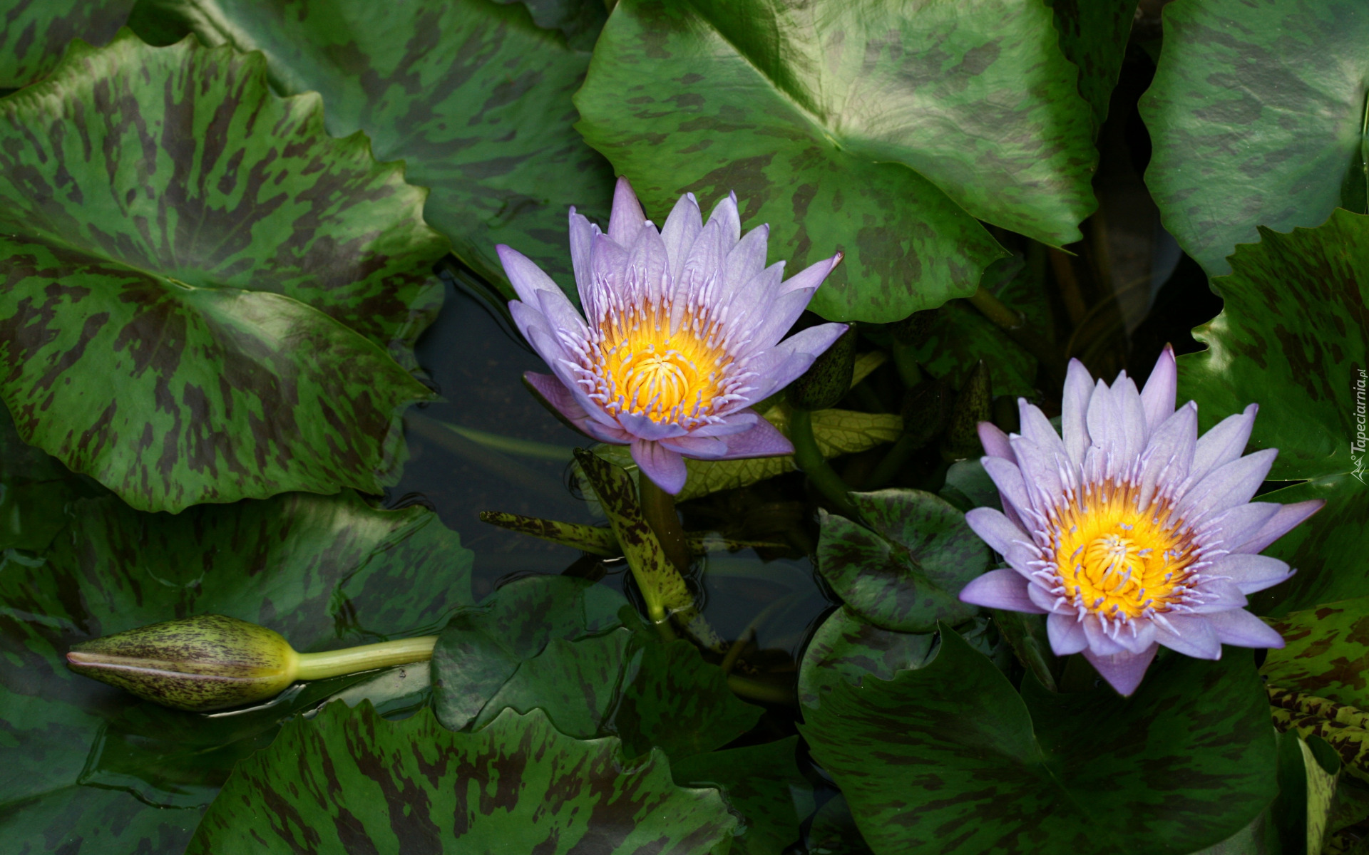 Edytor tapety: Dwie lilie wodne wśród zielonych liści