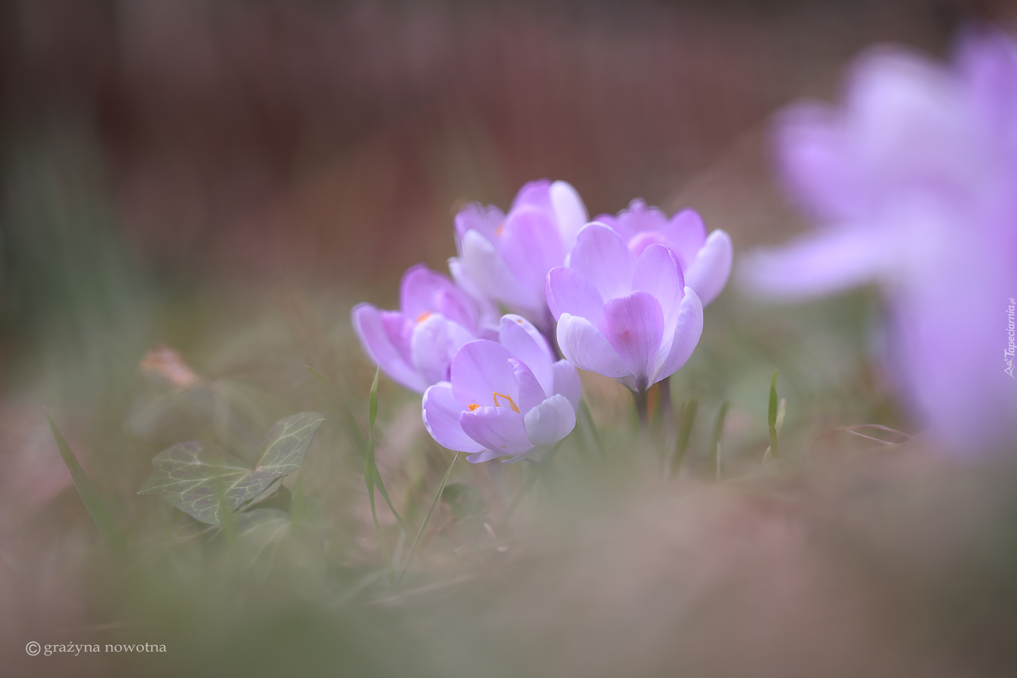Edytor tapety: Kępka jasnofioletowych krokusów na rozmytym tle