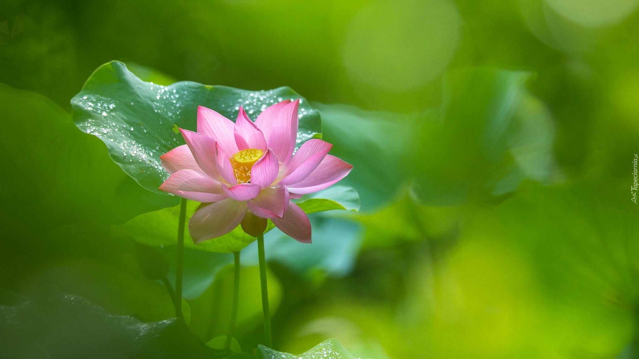 Edytor tapety: Kwiat lotosu i krople na liściach