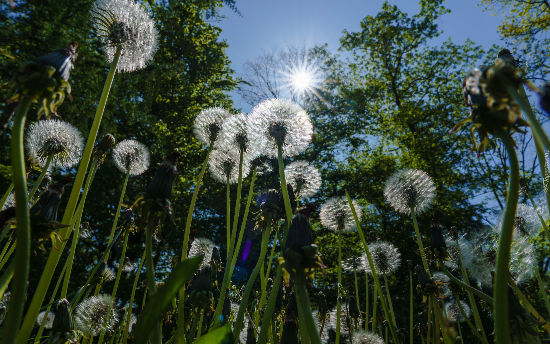 Edytor tapety: Dmuchawce w blasku słońca